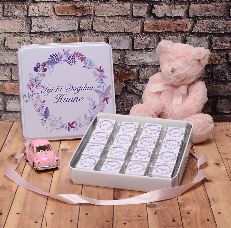 SİZİN ADINA ÖZEL TASARIM, METAL KUTU ÜZERİNE DİREKT BASKI ! Metal Kutu üzerine sizin isminize özel baskı yapılmakta olup, 48 adet doğum günü çikolatası kutuda standart olarak yer almaktadır. Tüm çikolatalarımız Valonia Markalıdır. Valonia, Pelit Çikolata ve Gıda Sanayi A.Ş. 'nin Tescilli Markasıdır. Siparişinizin ardından grafik çalışması hazırlanacak olup onayınıza sunulacaktır, onayınızla üretim sürecine geçilecektir. Madlen Çikolata Ebadı: 40x40 mm Kutu Ebadı: 215x215x35 mm Teslim Süresi : 3 işgünü |