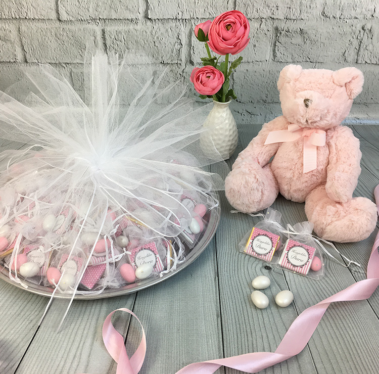 BEBEĞİNİZİN ADINA veya RESMİNE ÖZEL TASARIM, TEPSİDE SÜSLENMİŞ KIZ BEBEK ÇİKOLATASI + DRAJE ! 4 Farklı model grafikten oluşan madlen çikolatalar, "Hoşgeldin Bebek" konsepti ile hazırlanmış olarak "Bebeğinizin ismine veya doğum tarihine özel" olarak hazırlanabilmektedir. Veya Resimli çalışmalar talep edilmesi durumunda, fotoğrafları info@bebekcikolatasi.net adresine göndermenizi rica ederiz. Tepsinin içinde 50 adet kese, Her kesede 1 adet özel tasarımlı bebek çikolatası ve 2 adet Renkli Draje Bulunmaktadır. Tüm Bebek çikolatalarımız Valonia Markalıdır. Valonia, Pelit Çikolata ve Gıda Sanayi A.Ş. 'nin Tescilli Markasıdır. Siparişinizin ardından grafik çalışması hazırlanacak olup onayınızla üretime sürecine geçilecektir. Bu üründe toplam 50 adet Bebek Çikolatası + 100 Adet Draje yer almaktadır. Madlen Çikolata Ebadı: 40x40 mm Tepsi Ebadı: Çap 300 mm Teslim Süresi : 2 işgünü |